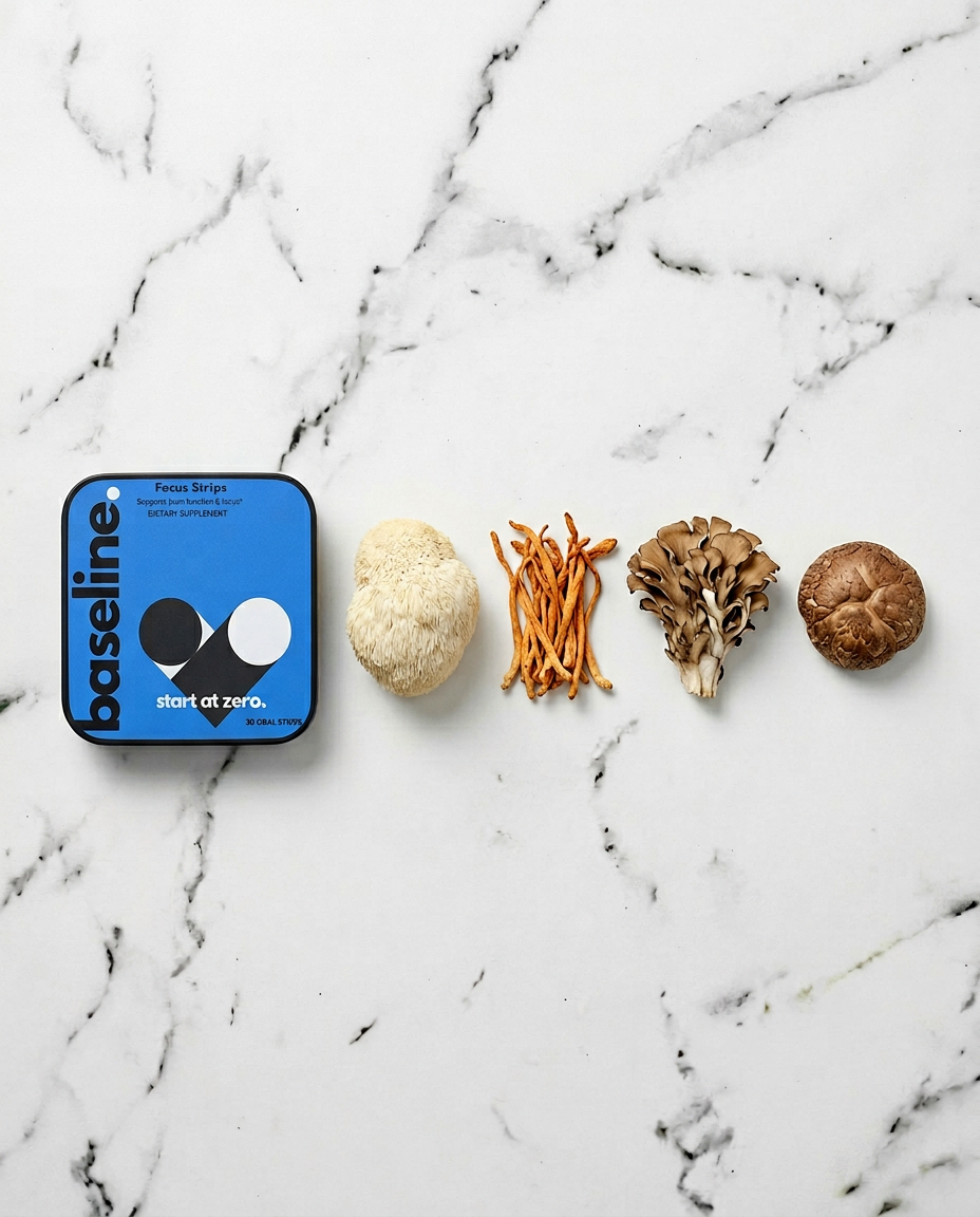 A quad-species mushroom complex that dissolves in seconds. No capsules, no powders, no caffeine, no jitters. Just 30mg Lion’s Mane and 25mg Cordyceps for the hours that actually matter.